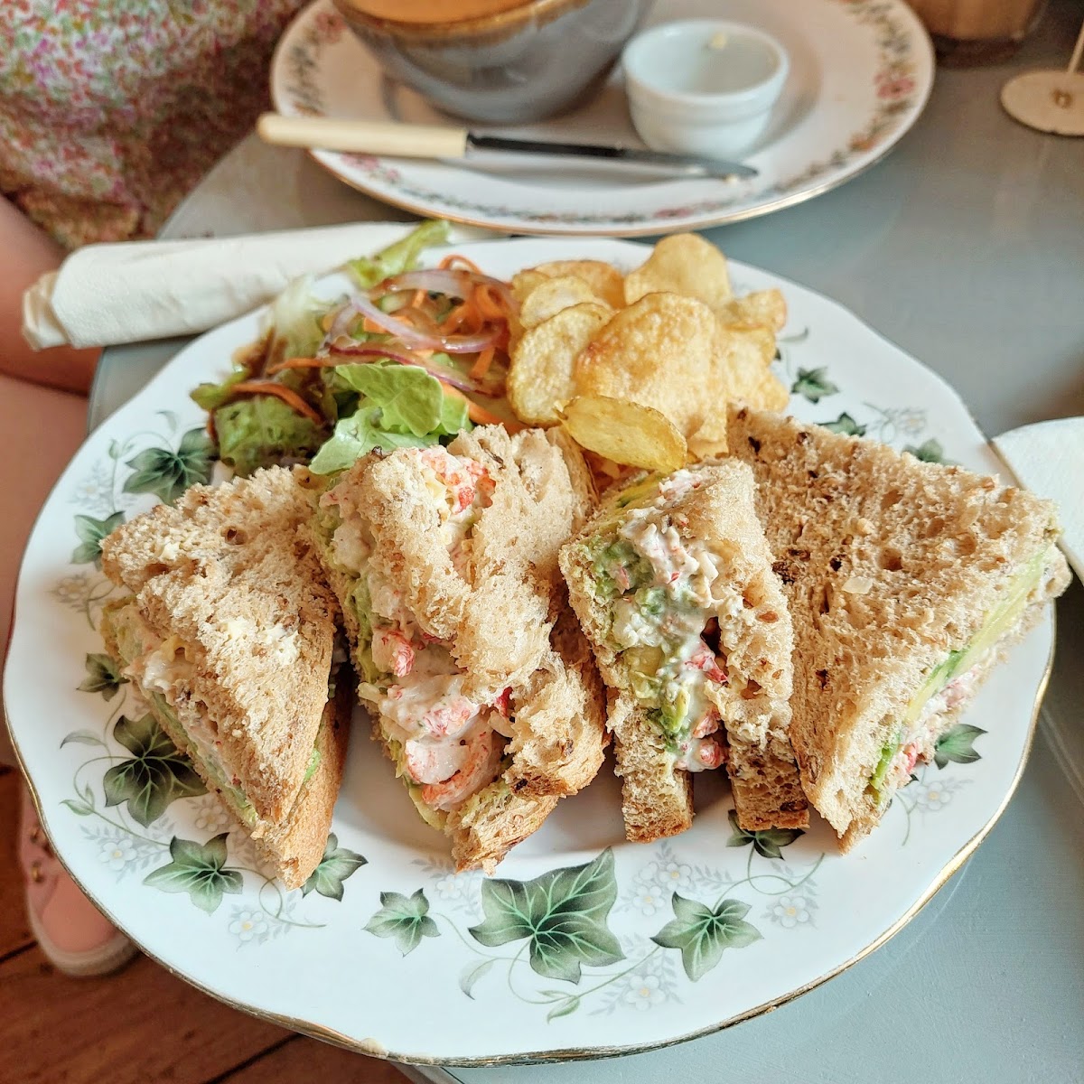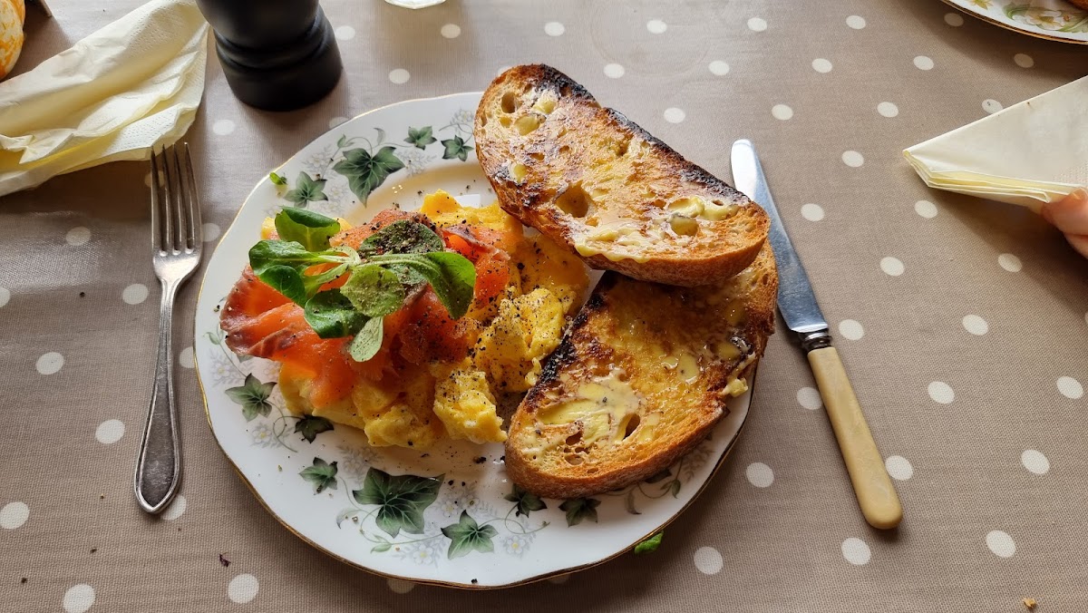 One of the standout features of the Vintage Rose Tea Room is its carefully curated menu, which showcases a delightful mix of traditional and contemporary dishes. The cappuccino, with its rich, creamy texture, is a great way to kickstart your day, perfectly paired with a slice of the indulgent chocolate and hazelnut cake that makes for a sweet treat. For those seeking a more substantial meal, the scrambled eggs and smoked salmon are an absolute must-try. The eggs are fluffy and perfectly cooked, while the smoked salmon adds a touch of luxury to the dish. Another popular choice is the crayfish sandwich, a light and refreshing option that’s perfect for lunch, served with crisp, fresh ingredients. If you're in the mood for something simple yet satisfying, the sourdough toast with marmalade is an ideal choice, combining the rustic crunch of sourdough with the sweet, tangy kick of homemade marmalade.